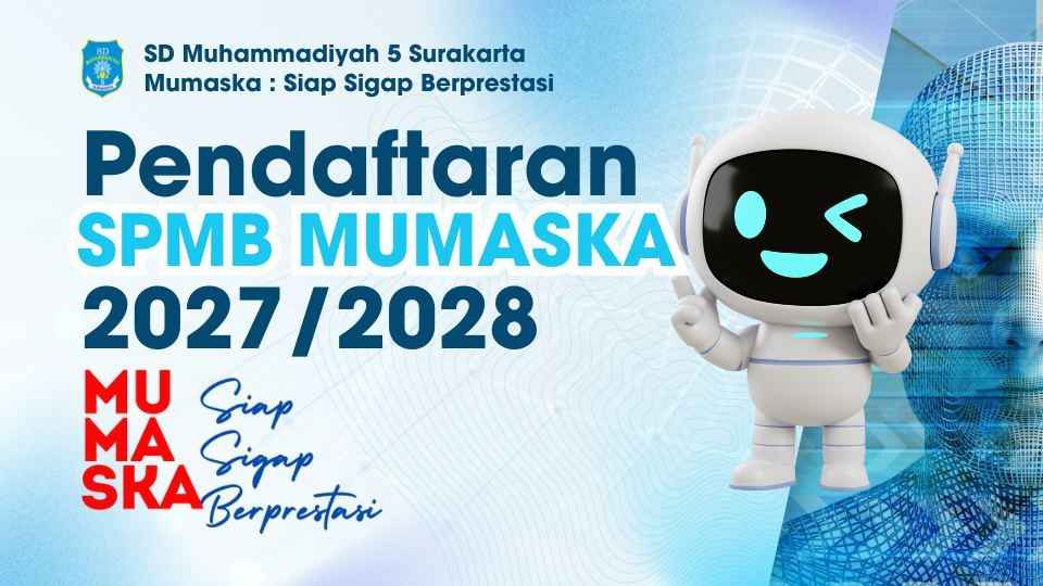 Untuk informasi lebih lanjut tentang pendaftaran (SPMB) di SD Muhammadiyah 5 Surakarta untuk tahun ajaran 2025/2026 bisa datang langsung ke sekolah atau bisa menghubungi: